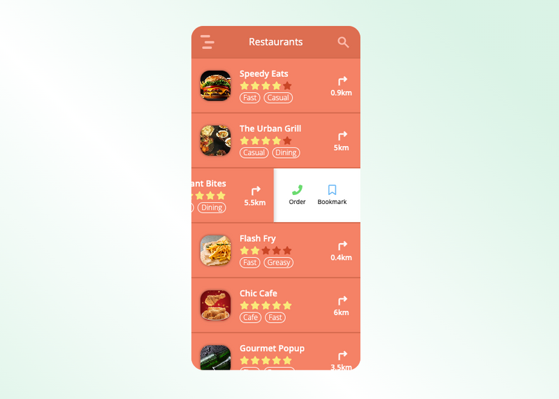Dynamically displays restaurant data and utilizes event-driven closure of the search bar and filtering functionalities.